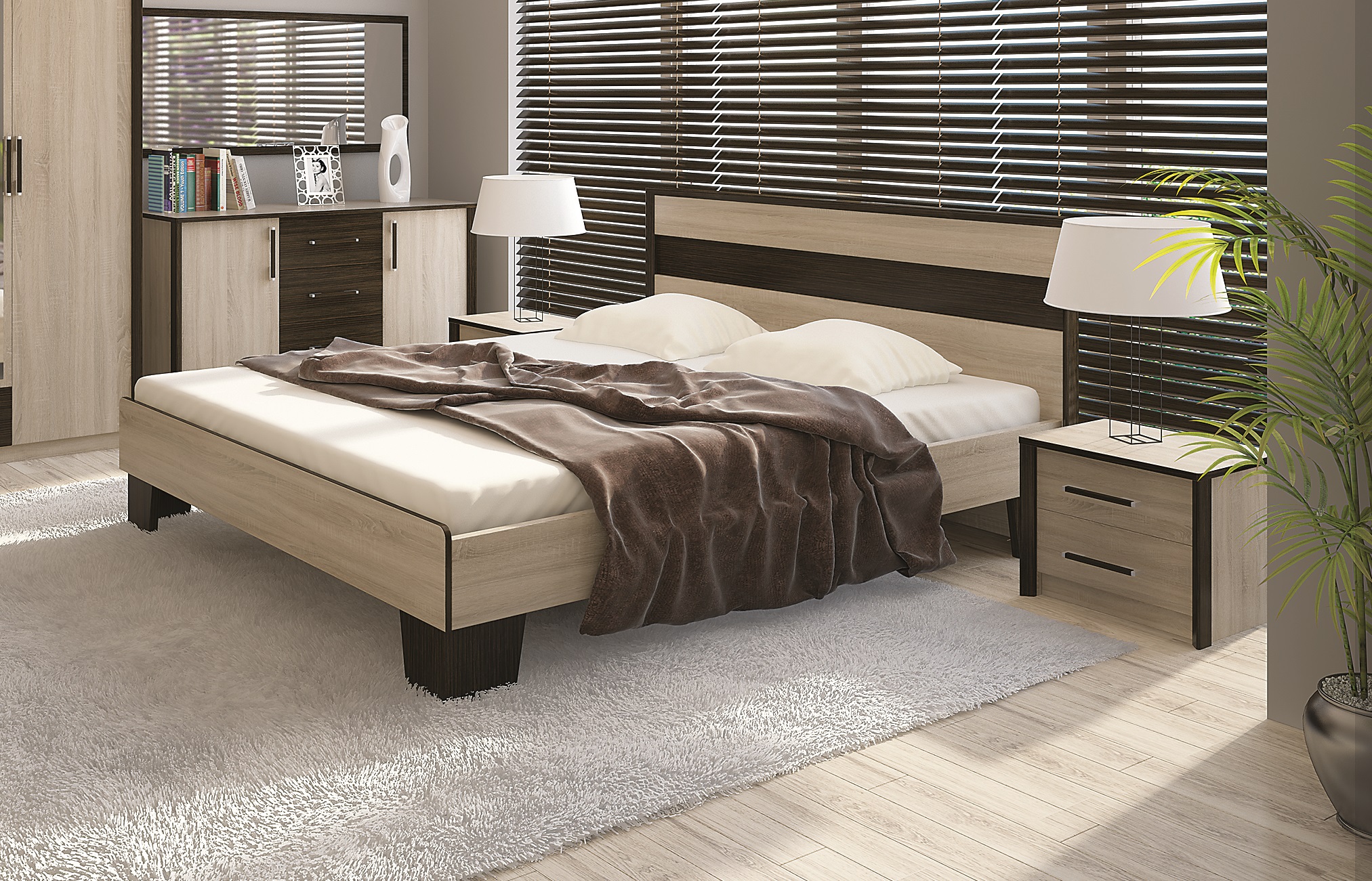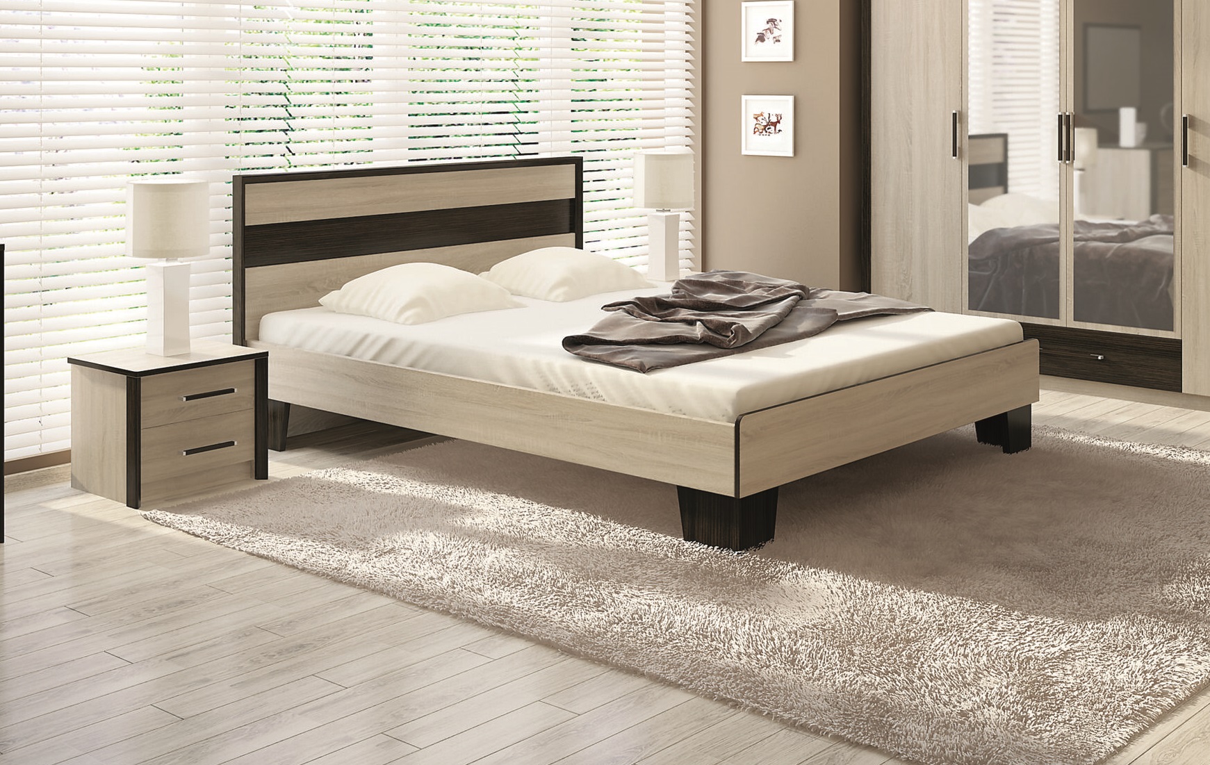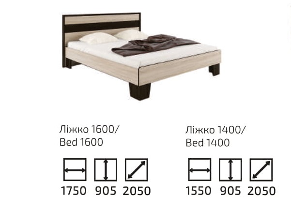 Ліжко Скарлет від відомої фабрики ” Сокме”, спальне місце 160х200 см. Матеріал виробу – ламіноване ДСП , колір – венге магія/ дуб сонома. Ліжко розраховане під букові ламелі на металевому каркасі та ніжках (комплектується по бажанню). Також до ліжка можна замовити ортопедичний матрас.