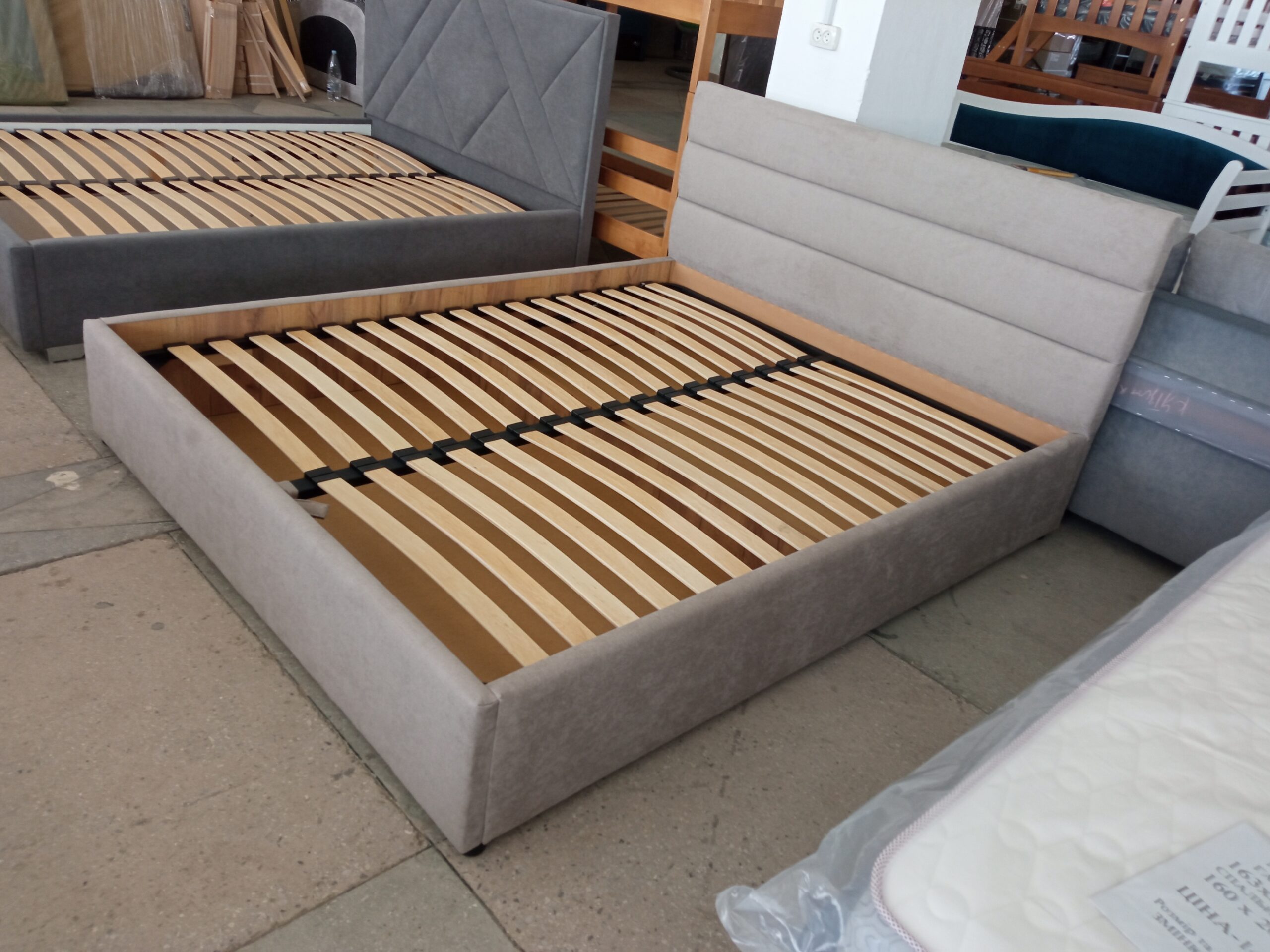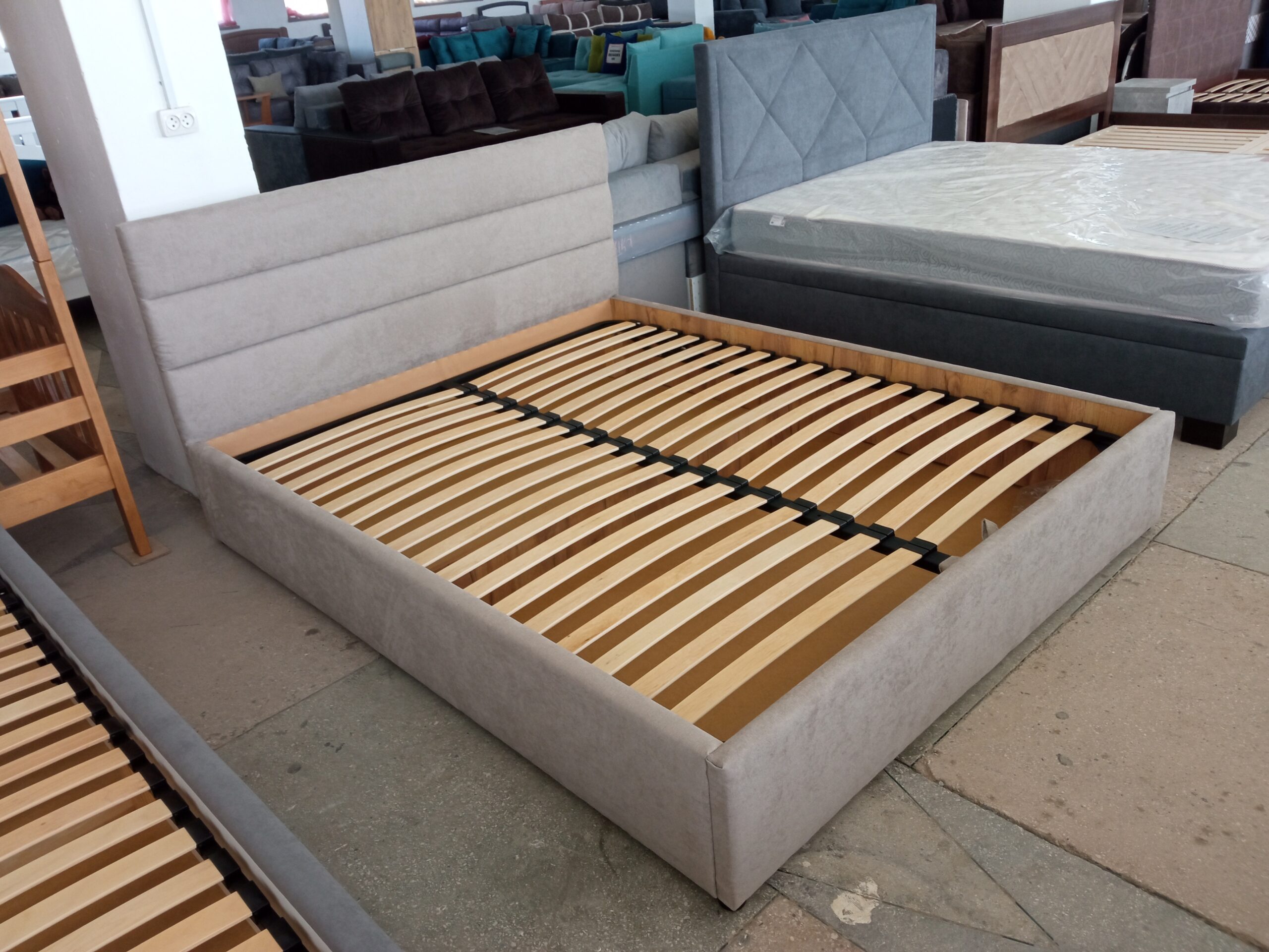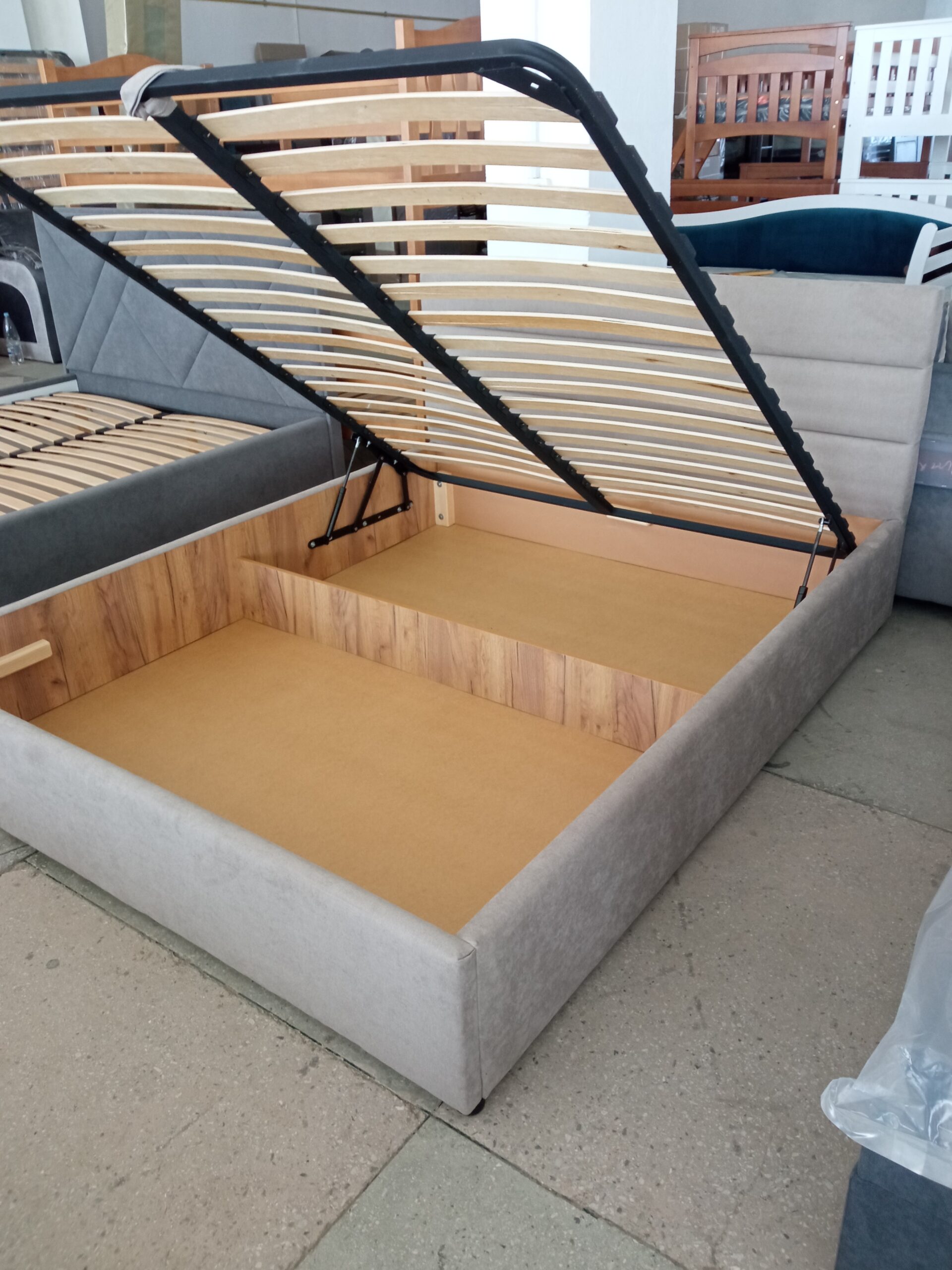 Пропоную сучасне ліжко з м’якою оббивкою, ламелями та підйомним механізмом. Розмір спального місця 160х200 см,, висота самої спинки-97 см. Ця модель є двох видів з горизонтальним і вертикальним декором спинки, кольори : сірий або беж. Додатково можна замовити ортопедичний матрас. Ліжко виглядає стильно та підходить для сучасного інтер’єру спальні.