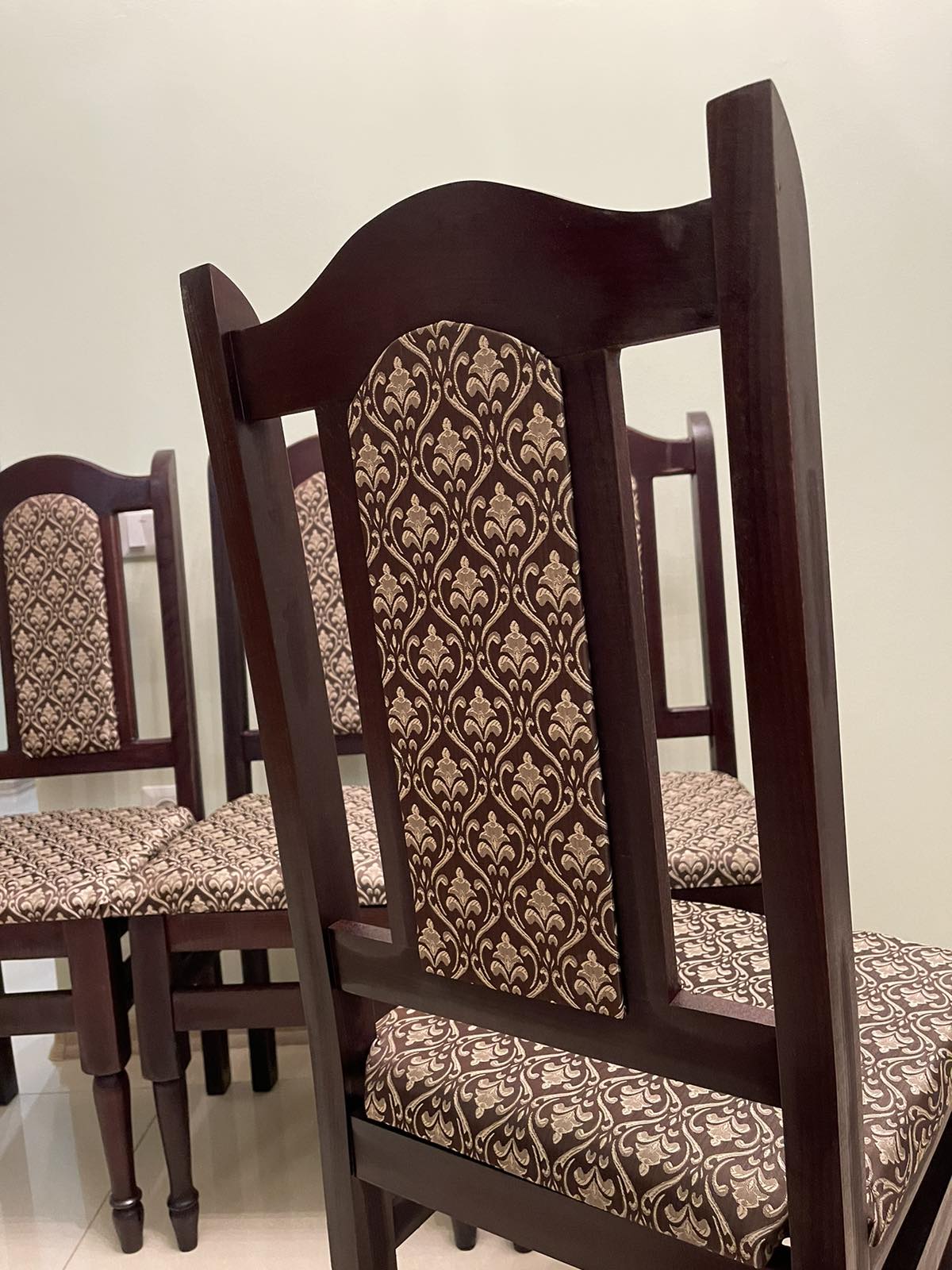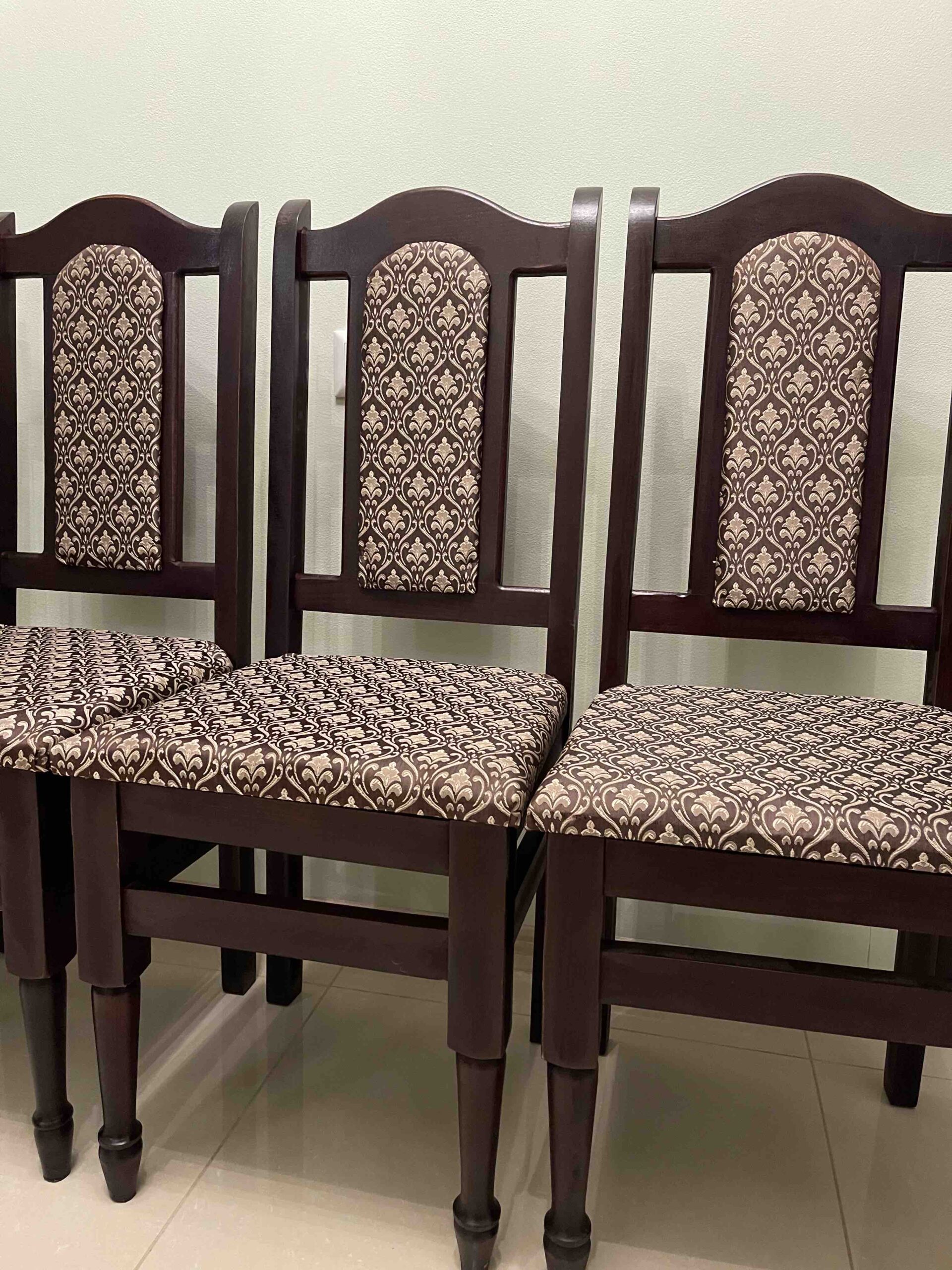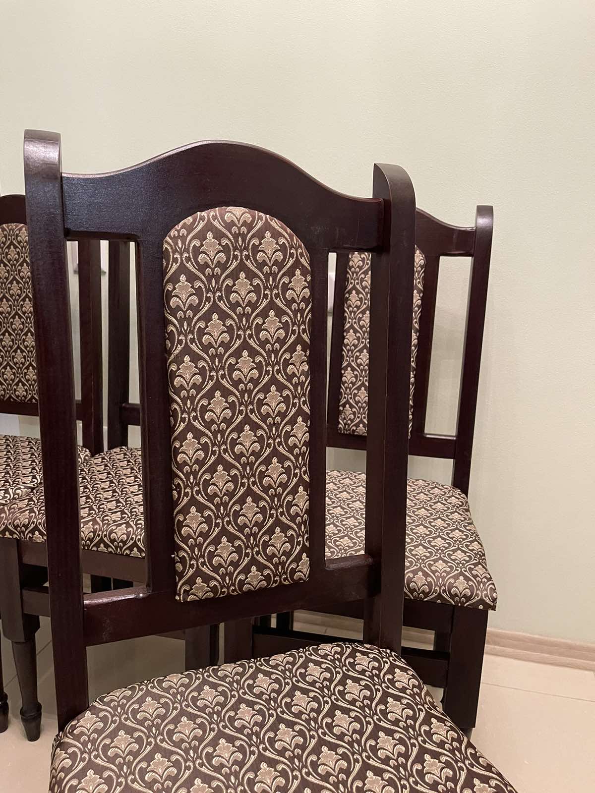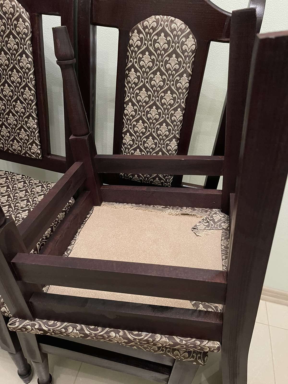 Стільці букові – м’які. Колір корпусу- венге, ширина сидіння 40 см., висота до місця сидіння 46 см., висота спинки 98 см.