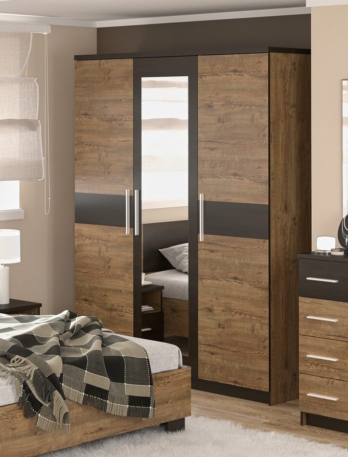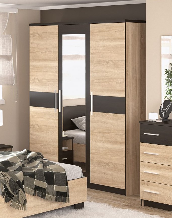 Хіт продаж – розпашна шафа Вероніка. Матеріал – ламіноване ДСП, виготовляється в двох варіантах кольорів – дуб сонома/венге (світліша) та дуб апріл/венге (темніша).