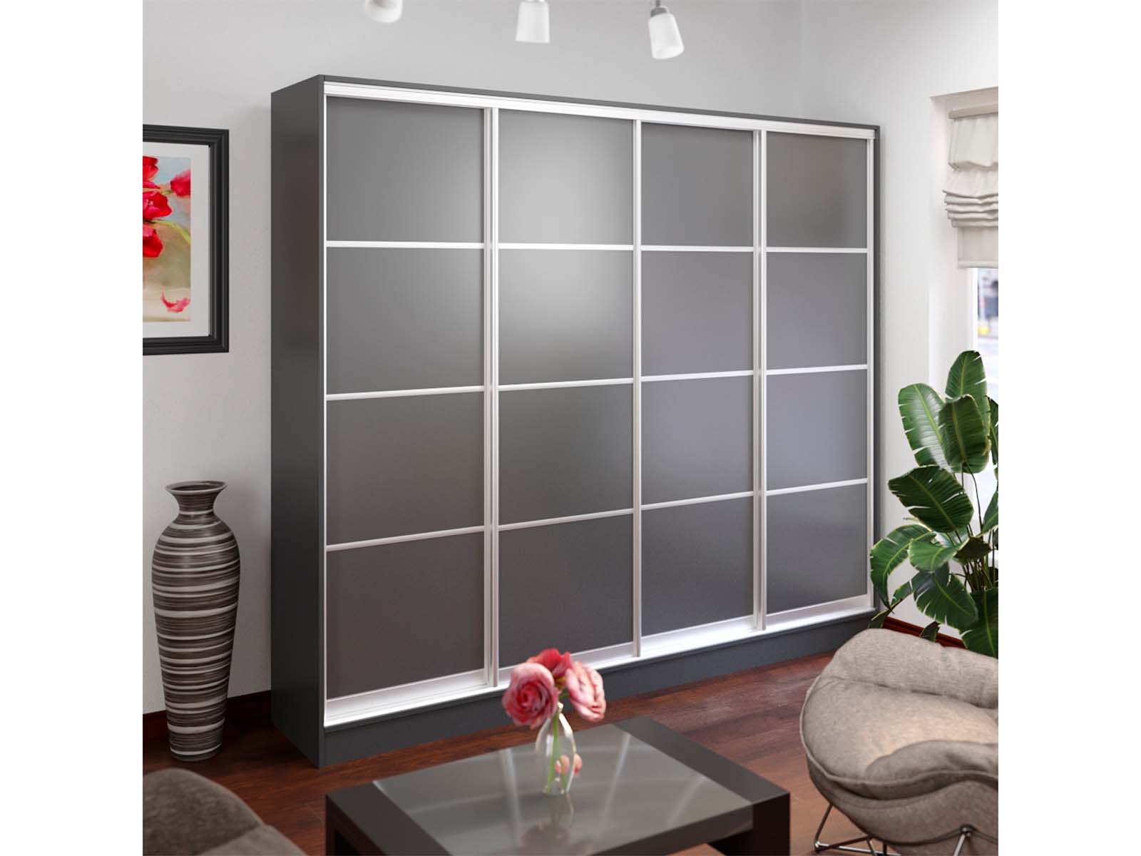 Колір на фото – антрацит, фасад – 4ДСП антрацит, профіль – срібло.